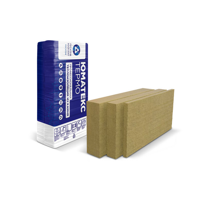 ЮМАТЕКС ТЕРМО - негорючая плита из каменной ваты. Применяется для теплоизоляции массивных стен, для изоляции вентилируемых фасадов в процессе реконструкции старых и строительства новых зданий. Плита гибкая, упругая, отличается легкостью обработки и монтажа, не накапливает влагу, улучшает звукоизоляцию и огнезащиту наружных стен.